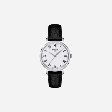 Tissot Everytime 34mm Leaf Dial Black Leather Strap Watch