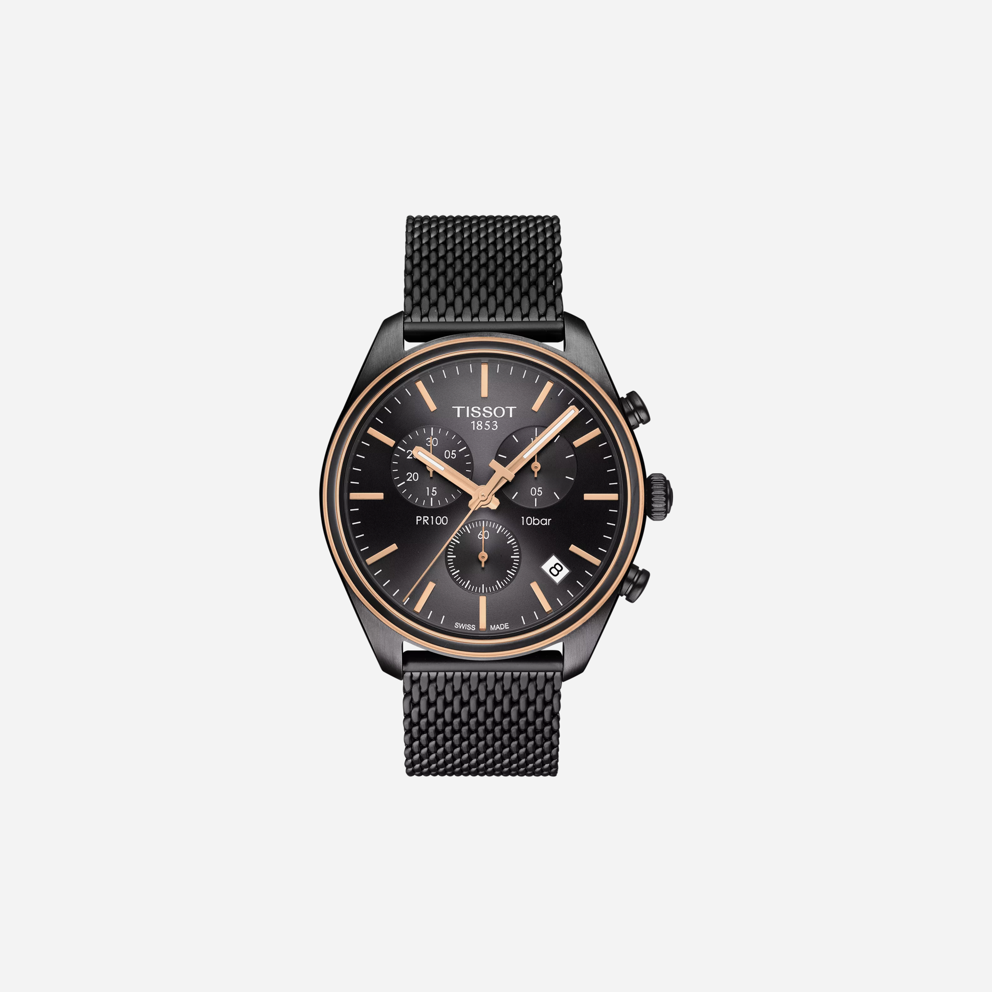 Tissot PR 100 Chronograph 41mm Black Dial Black Strap Watch