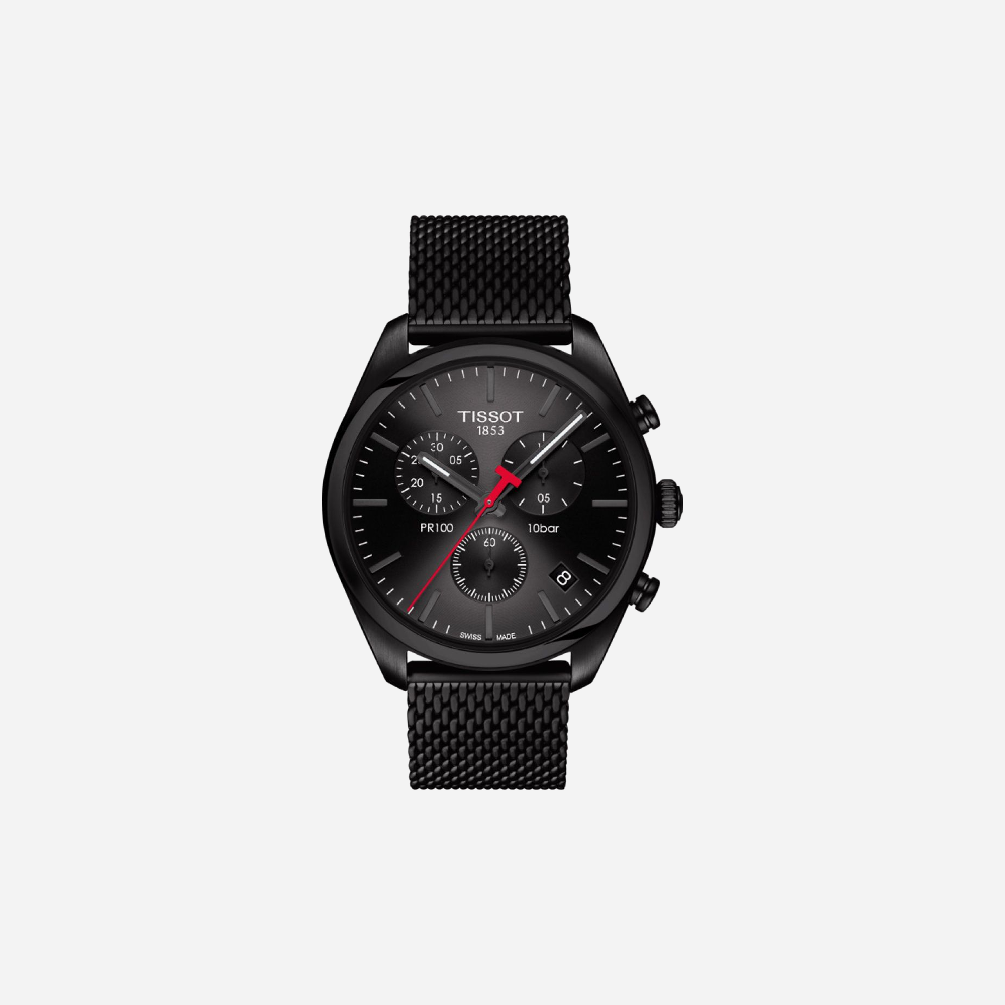 Tissot PR 100 Chronograph Black Dial Black Strap Watch