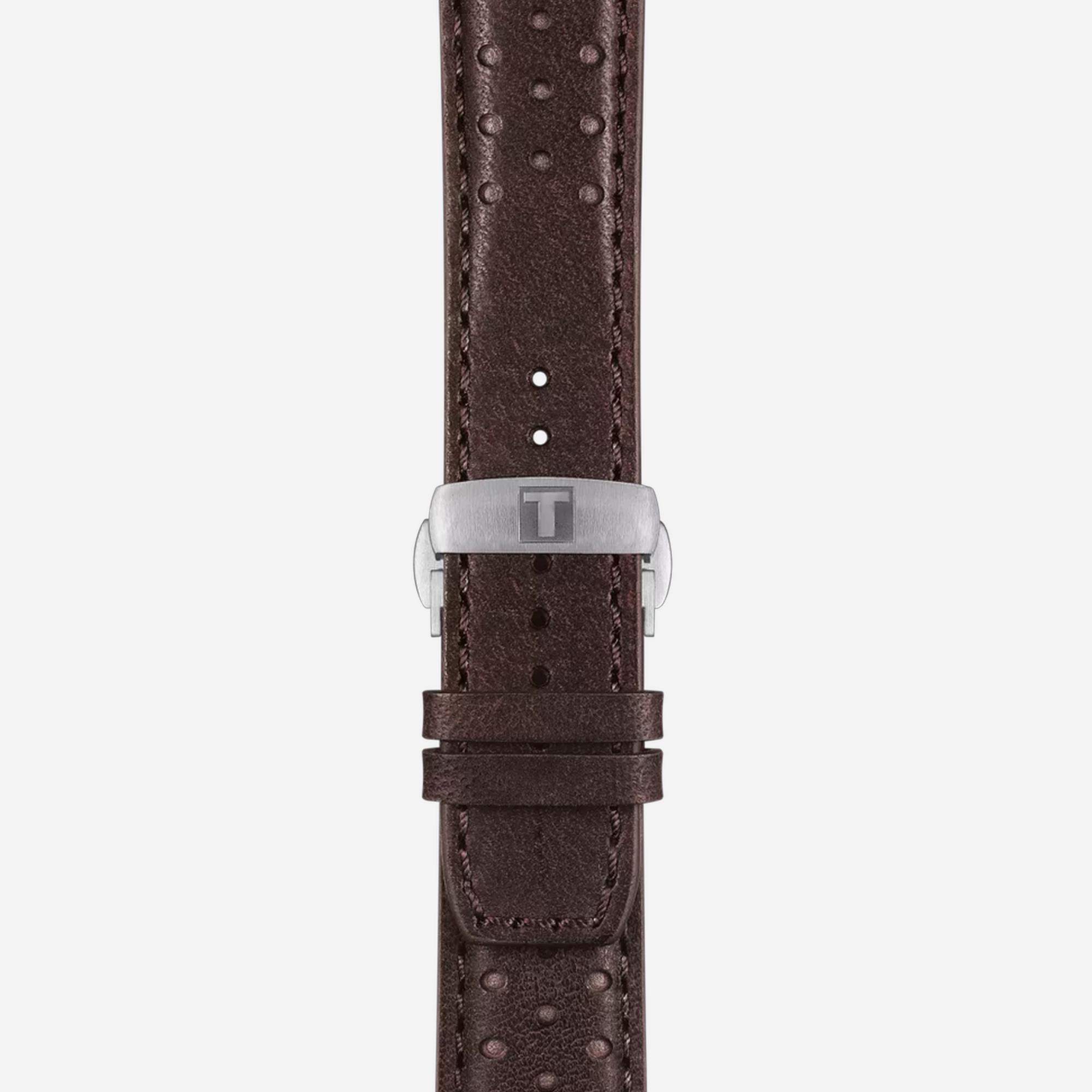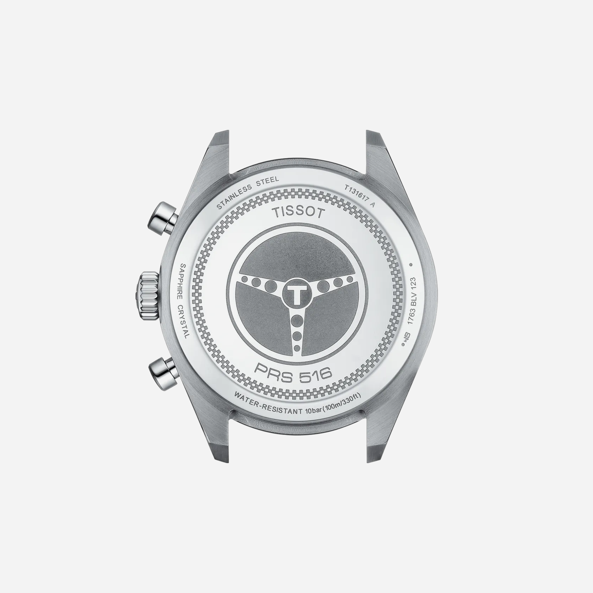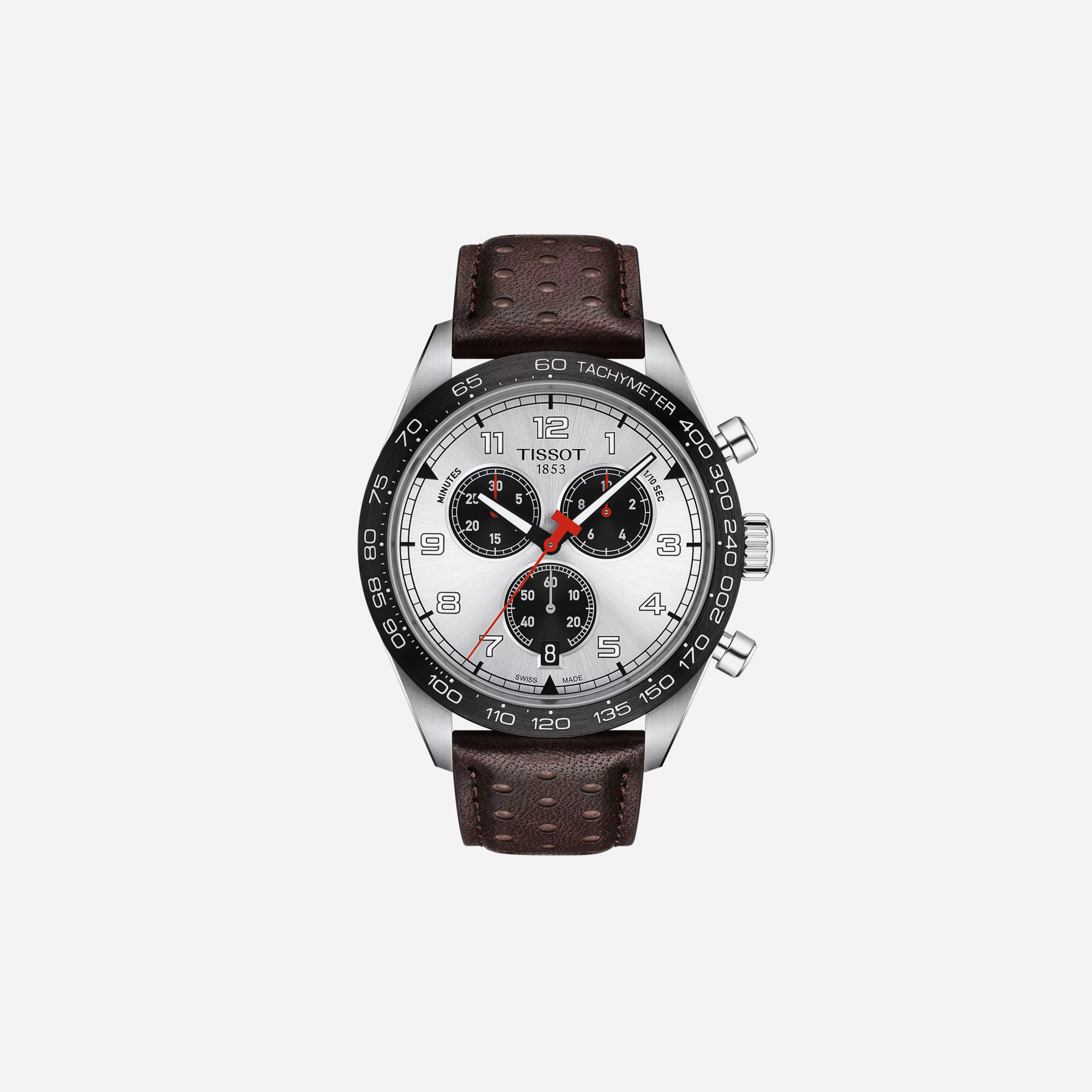 The Tissot PRS 516 Chronograph features a striking silver dial and a classic brown leather strap. This timepiece seamlessly blends high-performance functionality with sophisticated racing-inspired design. Perfect for watch enthusiasts seeking precision, style, and a touch of motorsport heritage on their wrist.