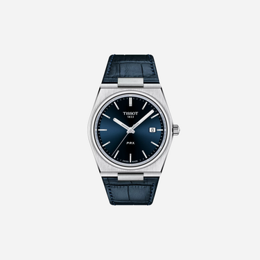 The Tissot PRX Blue Dial Blue Leather Strap Watch is a sophisticated timepiece with a modern design. This 40mm watch features a stunning blue dial and is paired with a premium blue leather strap, offering both elegance and comfort for the discerning watch collector.