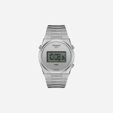 The Tissot PRX Digital Quartz watch features a sleek 40mm silver stainless steel design. This stylish timepiece offers precise quartz movement and a modern digital dial display. Perfect for everyday wear or enhancing your professional look, this Tissot PRX model combines retro charm with contemporary technology for watch enthusiasts.