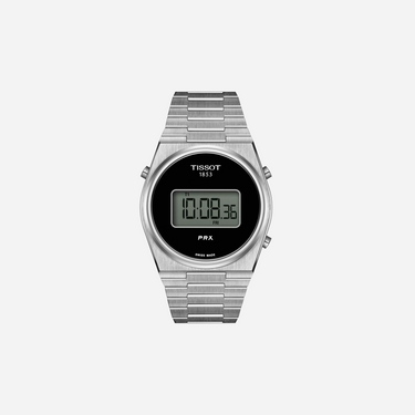 The Tissot PRX Digital Quartz watch is a stylish and modern timepiece featuring a sleek silver stainless steel design. This iconic PRX series watch combines vintage inspired aesthetics with contemporary digital functionality. It is a highly sought after watch perfect for everyday wear and a great addition to any collection.