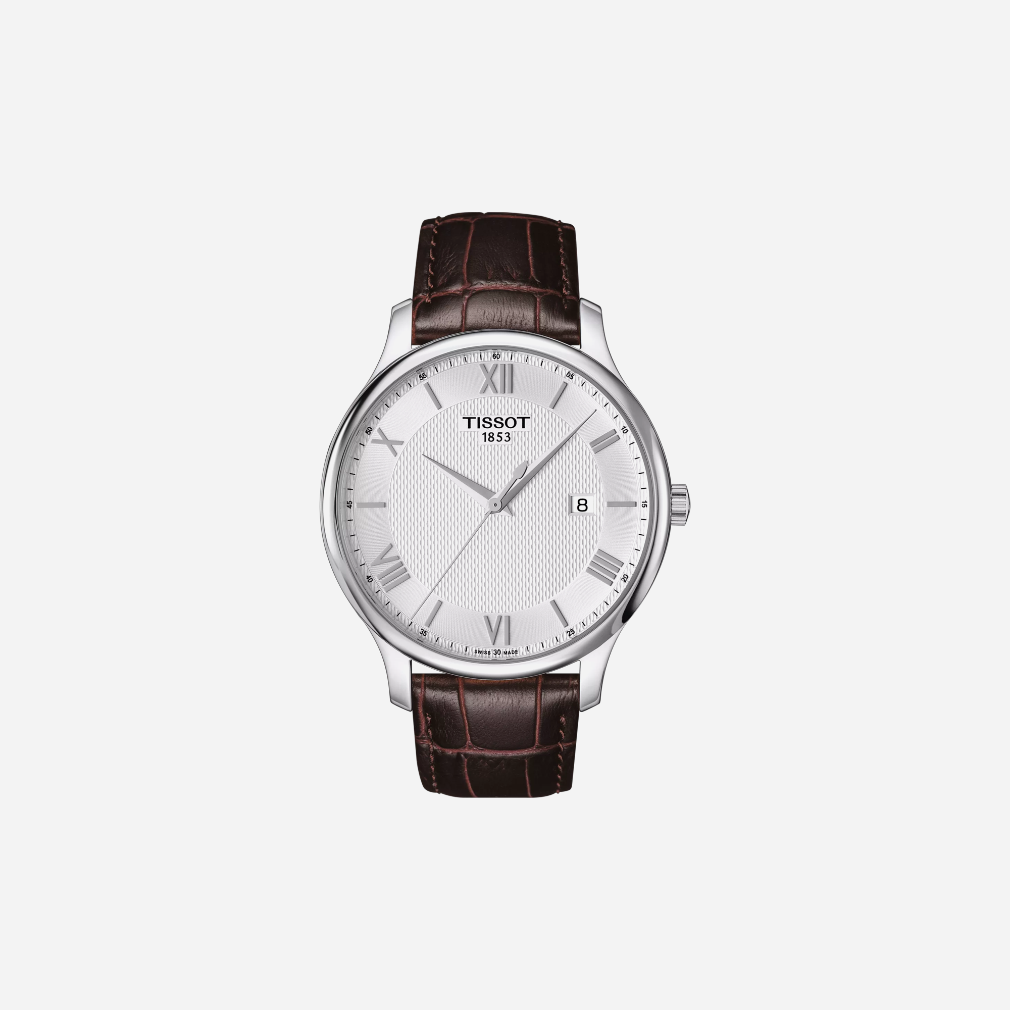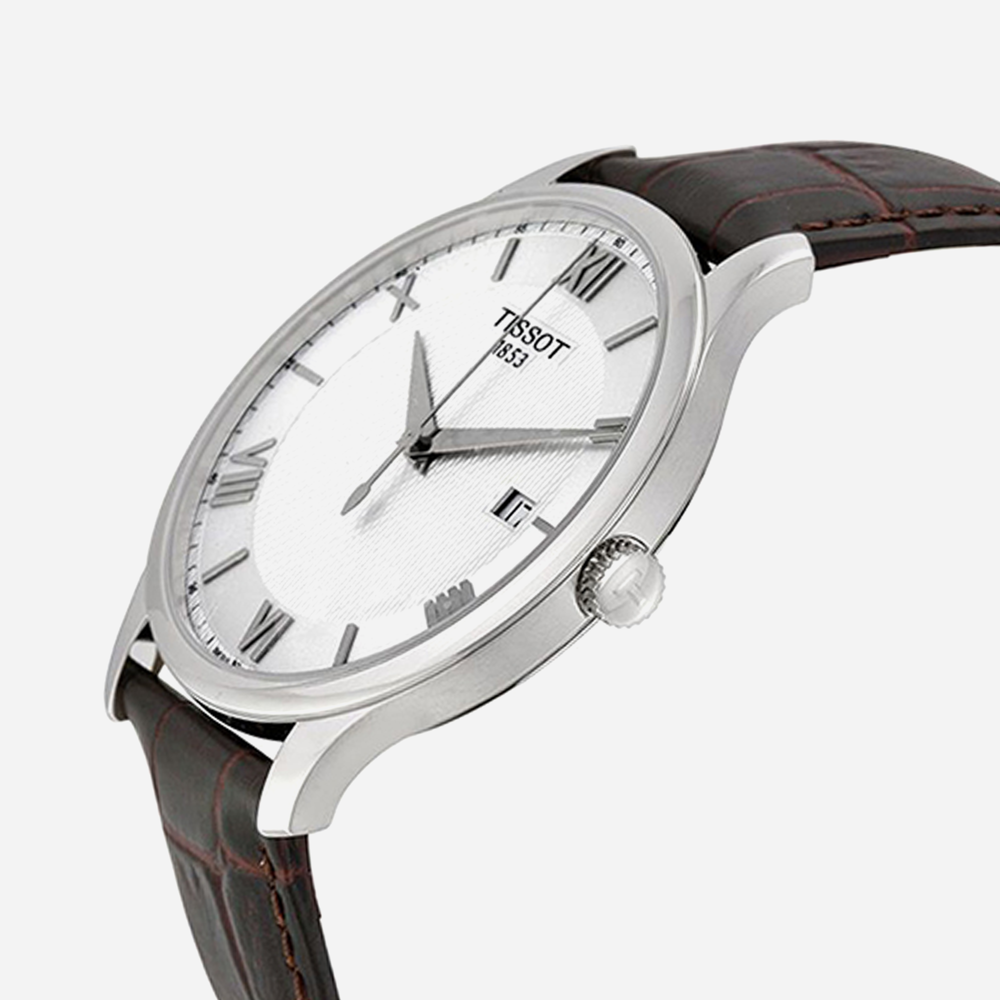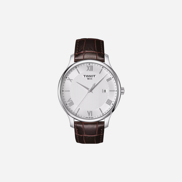 The Tissot Tradition watch features a sophisticated Dauphine dial paired with a classic brown leather strap, offering a timeless look. This elegant timepiece, with its Swiss precision and quality craftsmanship, is perfect for those seeking a stylish and reliable accessory. Its traditional design ensures lasting appeal for any occasion.