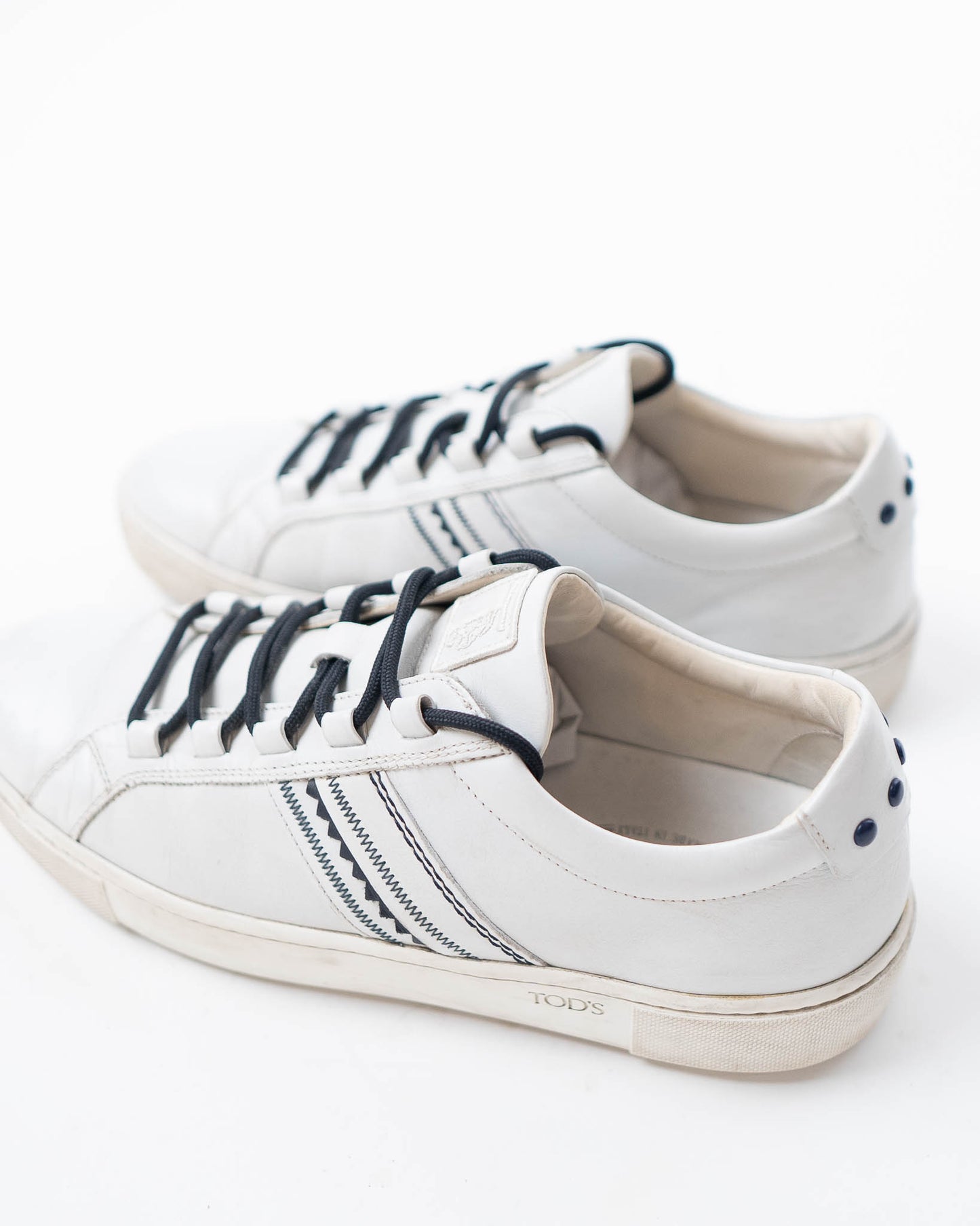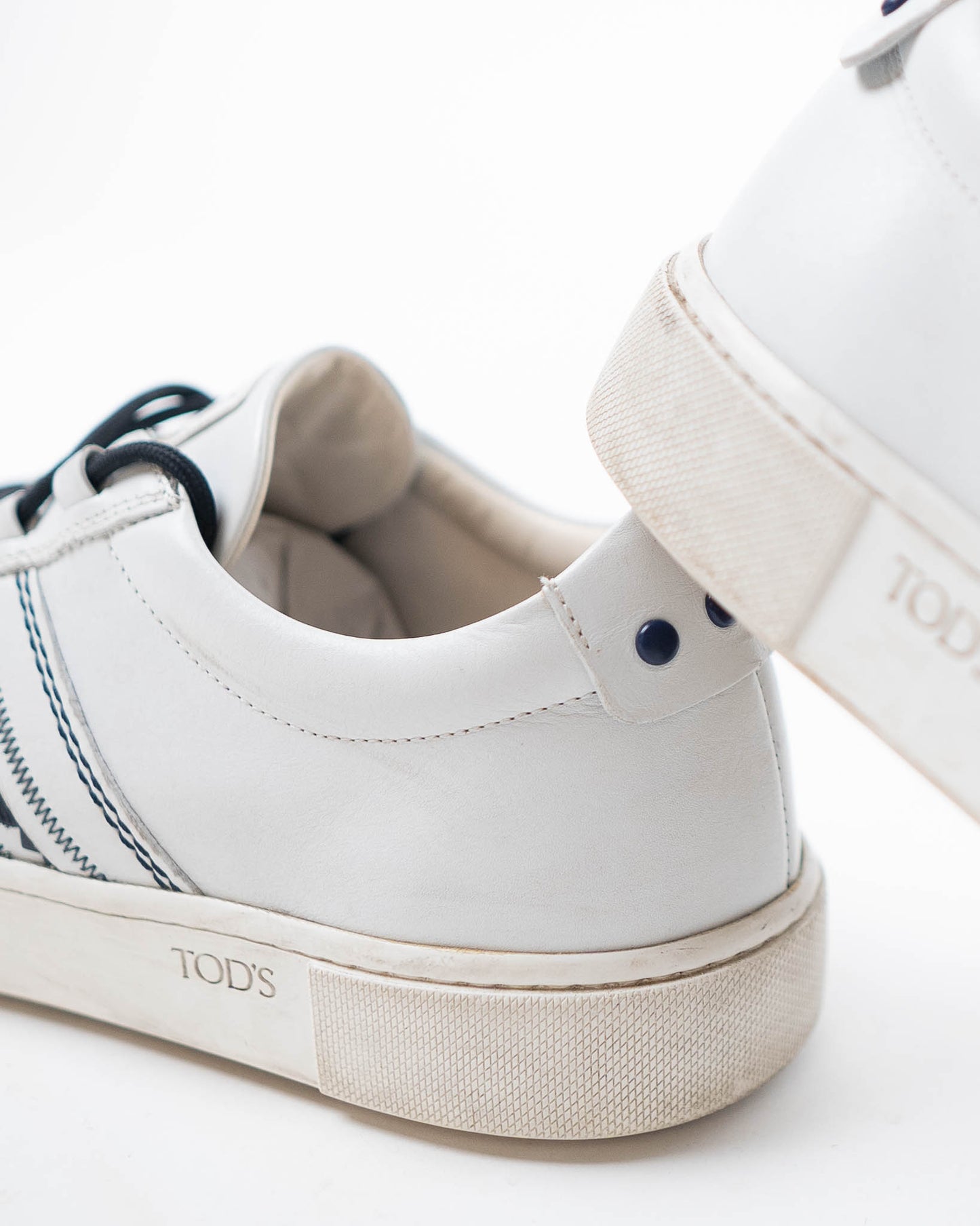 Tods White Leather Embroidery Stitch Panel Lace Up Sneakers (UK 8.5)