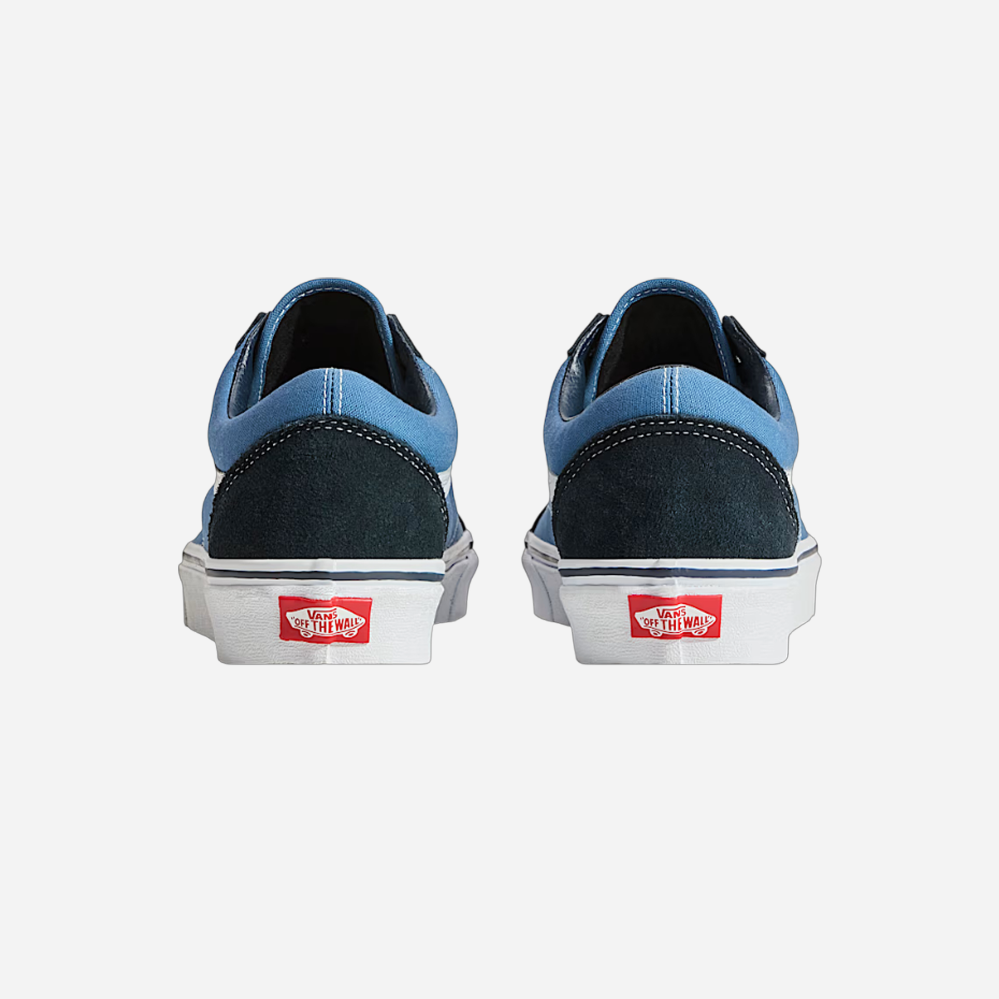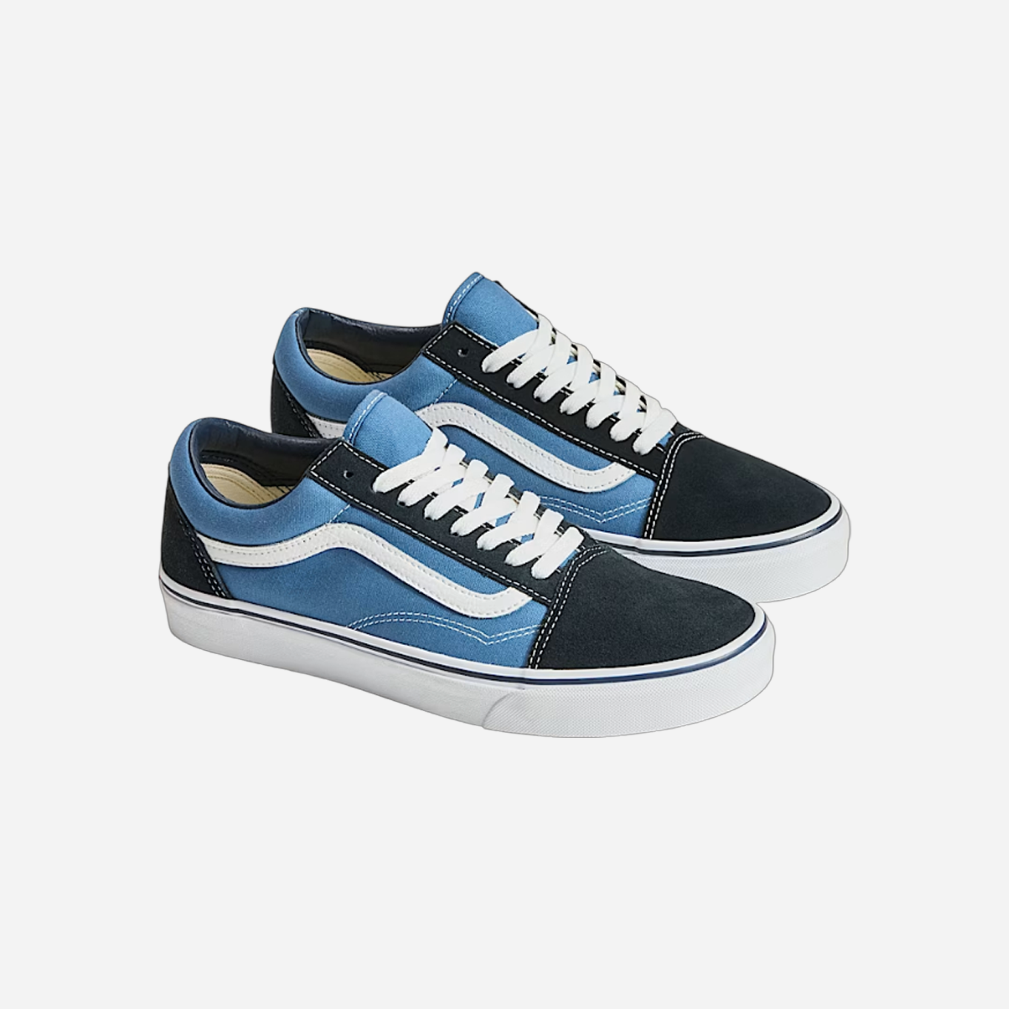 The Vans Old Skool Navy Blue sneaker is a classic low top shoe featuring the Iconic side stripe perfect for skateboarding or everyday casual wear. This durable design blends canvas and suede materials providing long lasting comfort and a timeless aesthetic. Its versatile color makes it easy to pair with any outfit ensuring authentic style.