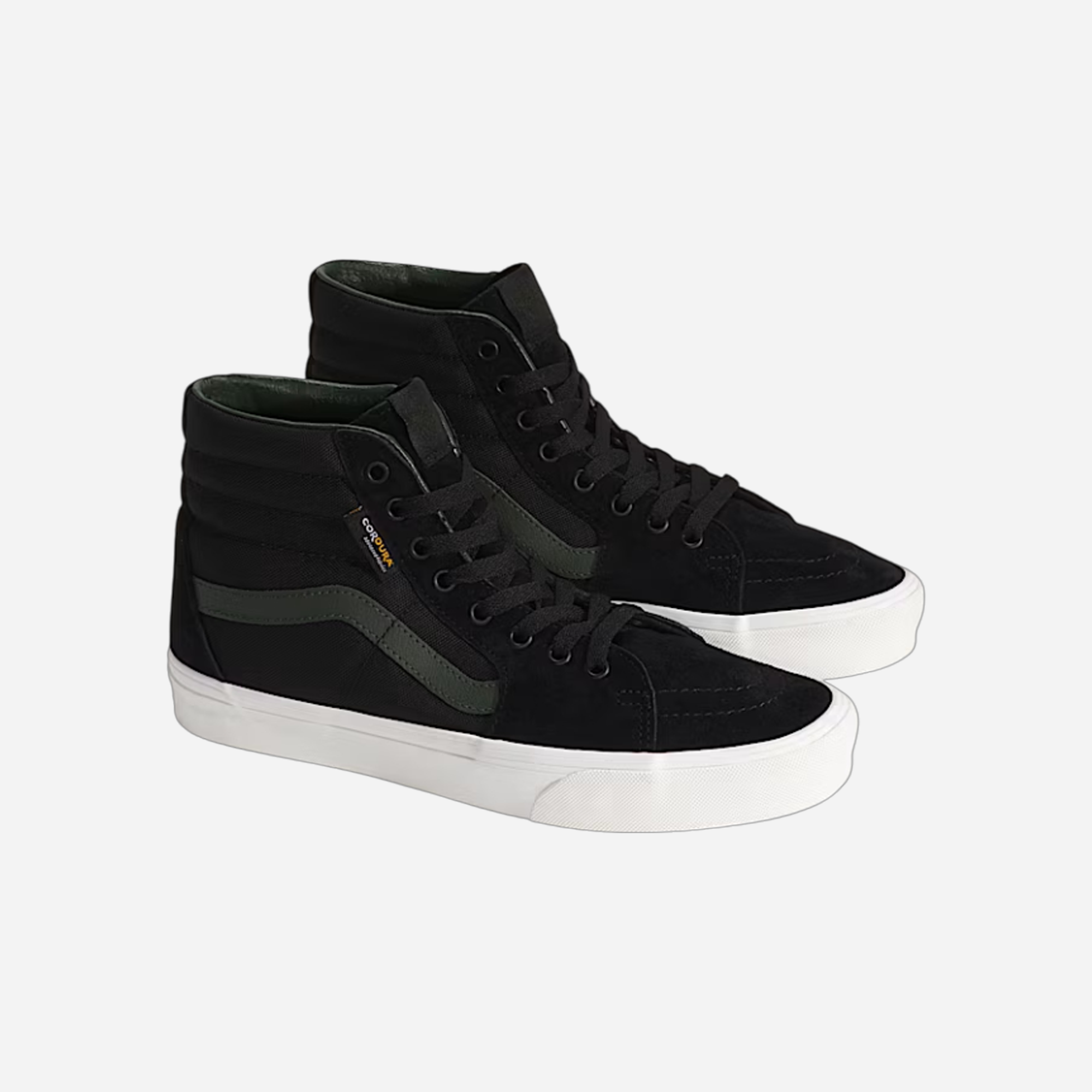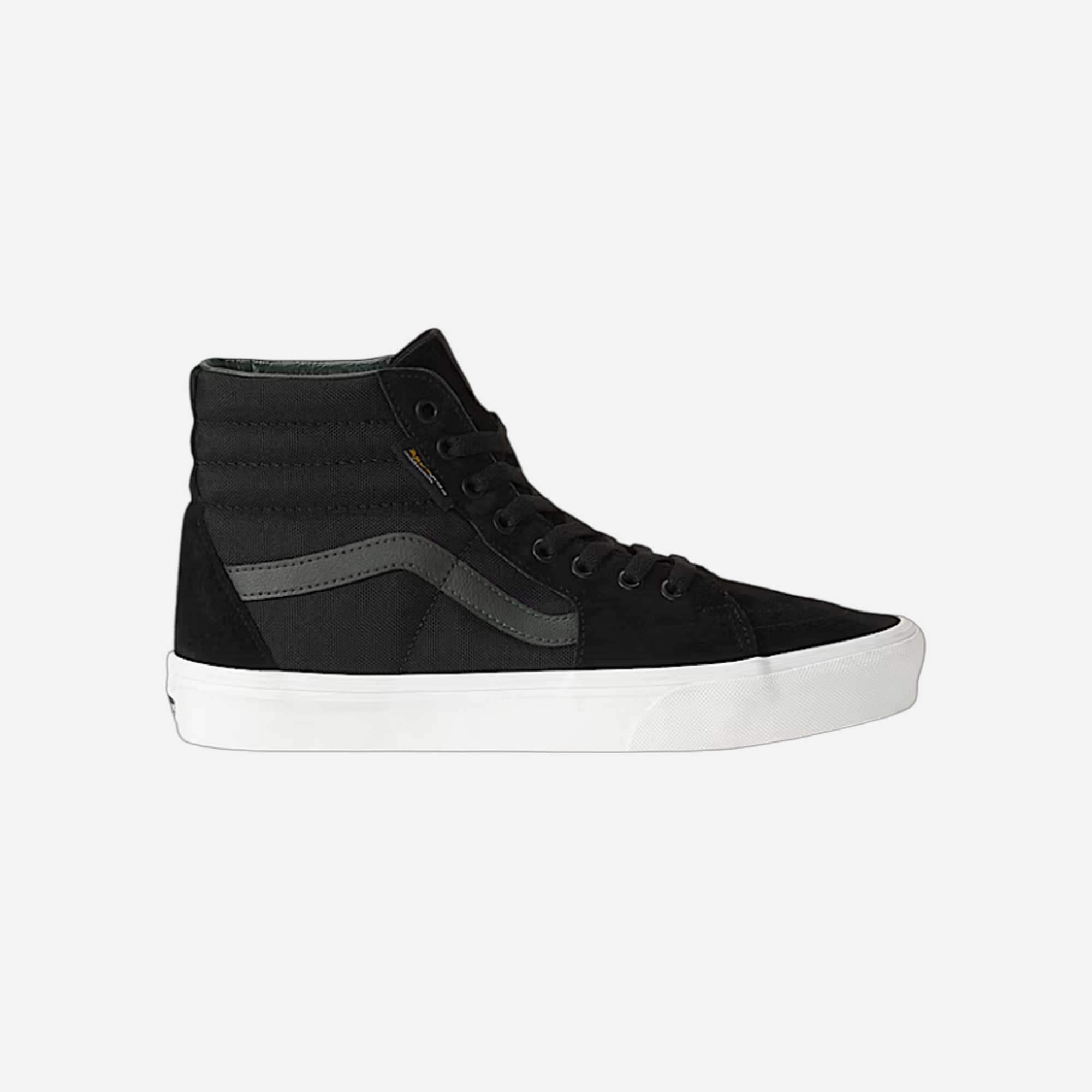 The Vans Sk8-Hi Cordura Shoe in Black and Green features durable Cordura fabric for superior resilience. These high-top sneakers offer classic styling combined with rugged performance, making them perfect for skating and everyday wear. Experience iconic design, premium comfort, and long-lasting quality in this versatile footwear option.